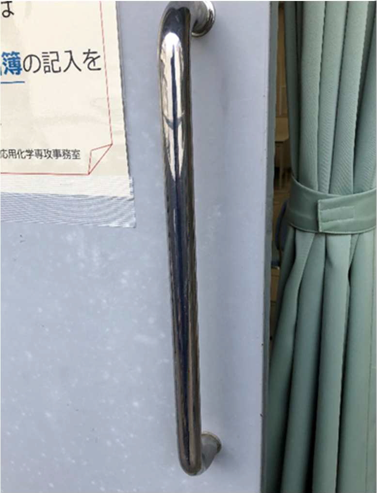 男女学生寮、留学生寮を中心にドアハン ドル、階段手摺り、スイッチ類を中心に不 特定多数の学生、教職員が触れる部位を 広く施工させていただきました。