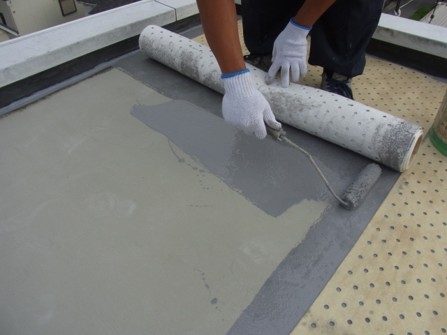 その後、下地に密着性を高めるプライマーを塗布し、ウレタン塗料を均一に塗装して防水膜を形成します。