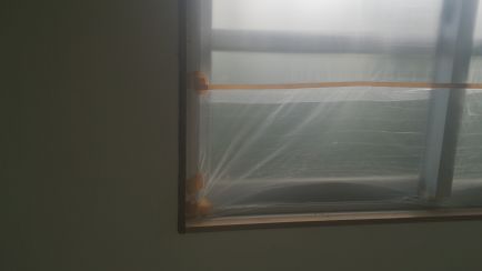 退去時に原状回復してもらったようですが三方枠、四方枠を無視して無理やりアルミサッシを埋め込んだように思われます。