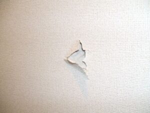 穴の部分をパテで埋め、また、よりきれいに修復するために壁糊を乾燥させるのに1日頂き、計2日で仕上げました。