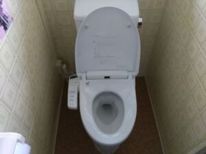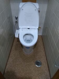介護保険住宅改修工事適用するとのことで、トイレの床材変更と段差解消。節水型トイレへの変更の希望でした。