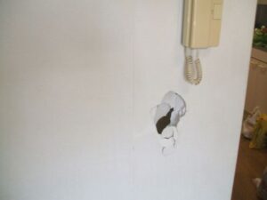 クロスの壁が一部破損したので、直してほしいとのことでした。